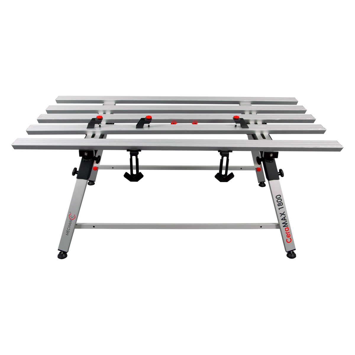 Стіл-трансформер для великого формату CeraMAX 1800 — це зручний, настроюваний, легкий і високоточний пристрій для розкрою та обробки керамограніту великого формату. Переваги моделі: Широкі алюмінієві ламелі, які не прогинаються навіть під значним навантаженням. Відкалібровані ламелі забезпечують щільне укладання плитки без зазорів, що знижує ризик тріщин і вібрацій. Розсувна система дозволяє регулювати ширину столу від 1,0 до 1,5 метра. Гнучке розміщення ламелей — з різною відстанню або впритул, залежно від розміру заготовки. Поперечини слугують як для з’єднання з додатковим столом (для обробки плит довжиною до 3,6 м), так і для зручного транспортування: ламелі можна зібрати та зафіксувати. Два металеві кронштейни призначені для зберігання правила і зручного розміщення кутових шліфувальних машин. Вбудовані магніти — для надійної фіксації інструменту. Алюмінієві перемички підсилюють жорсткість конструкції й утворюють додаткову полицю при встановленні листових матеріалів. CeraMAX 1800 — вагомі переваги для великих справ! Розміри: Складений 1000х1800х820 мм; Розкладений 1500х1800х820 мм.